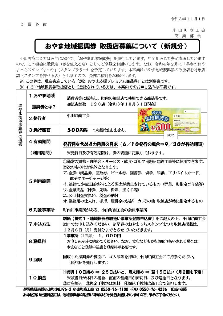 小山町商工会では通年において「 おやま地域振興券 」 を発行しています。