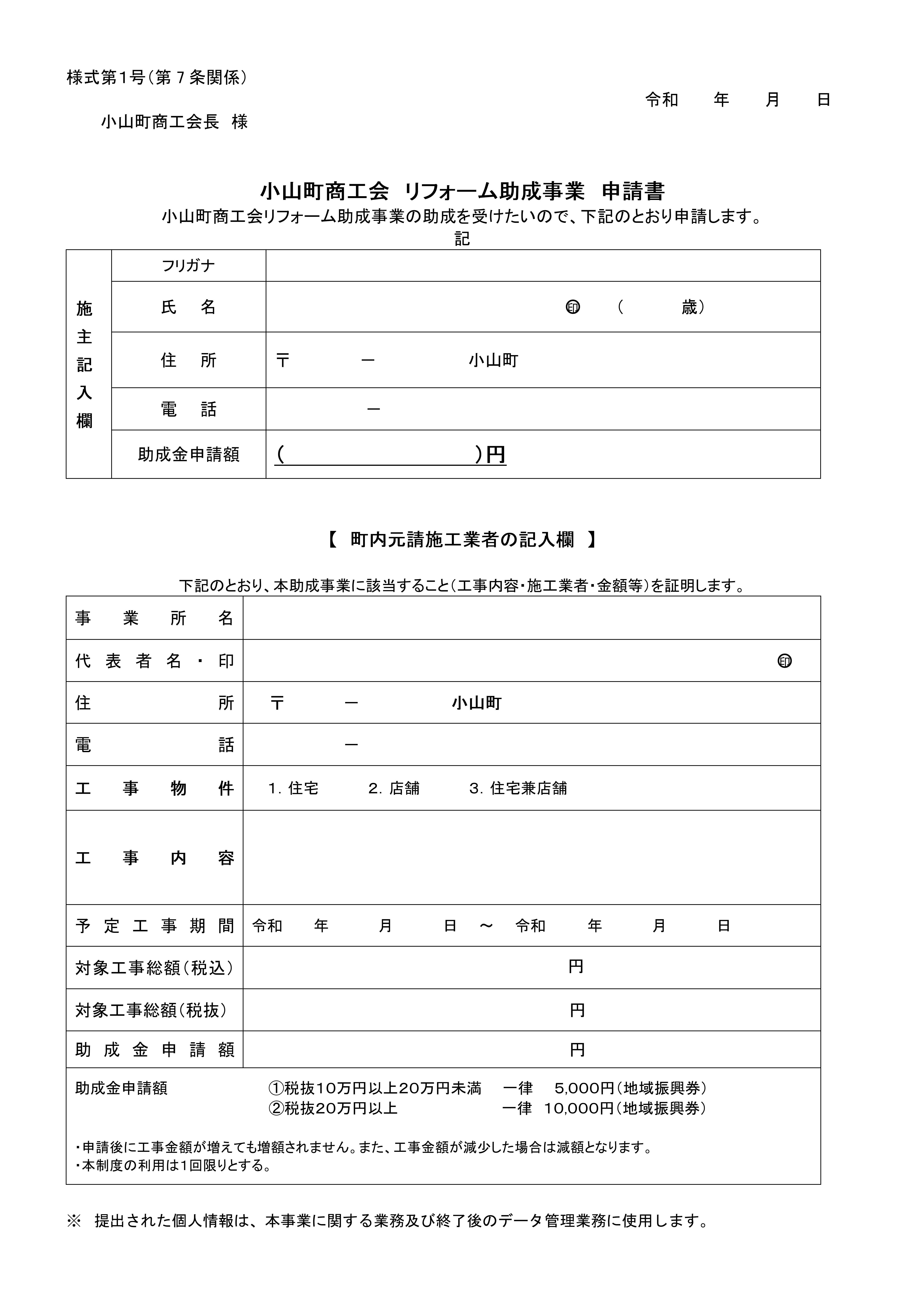 2020年6月9日 お知らせからのお知らせ 令和2年度リフォーム助成事業申請(様式)について リフォーム助成事業申請書類は以下よりダウンロードできます。 令和2年度リフォーム助成事業(様式1号)(様式2号)(Word版)