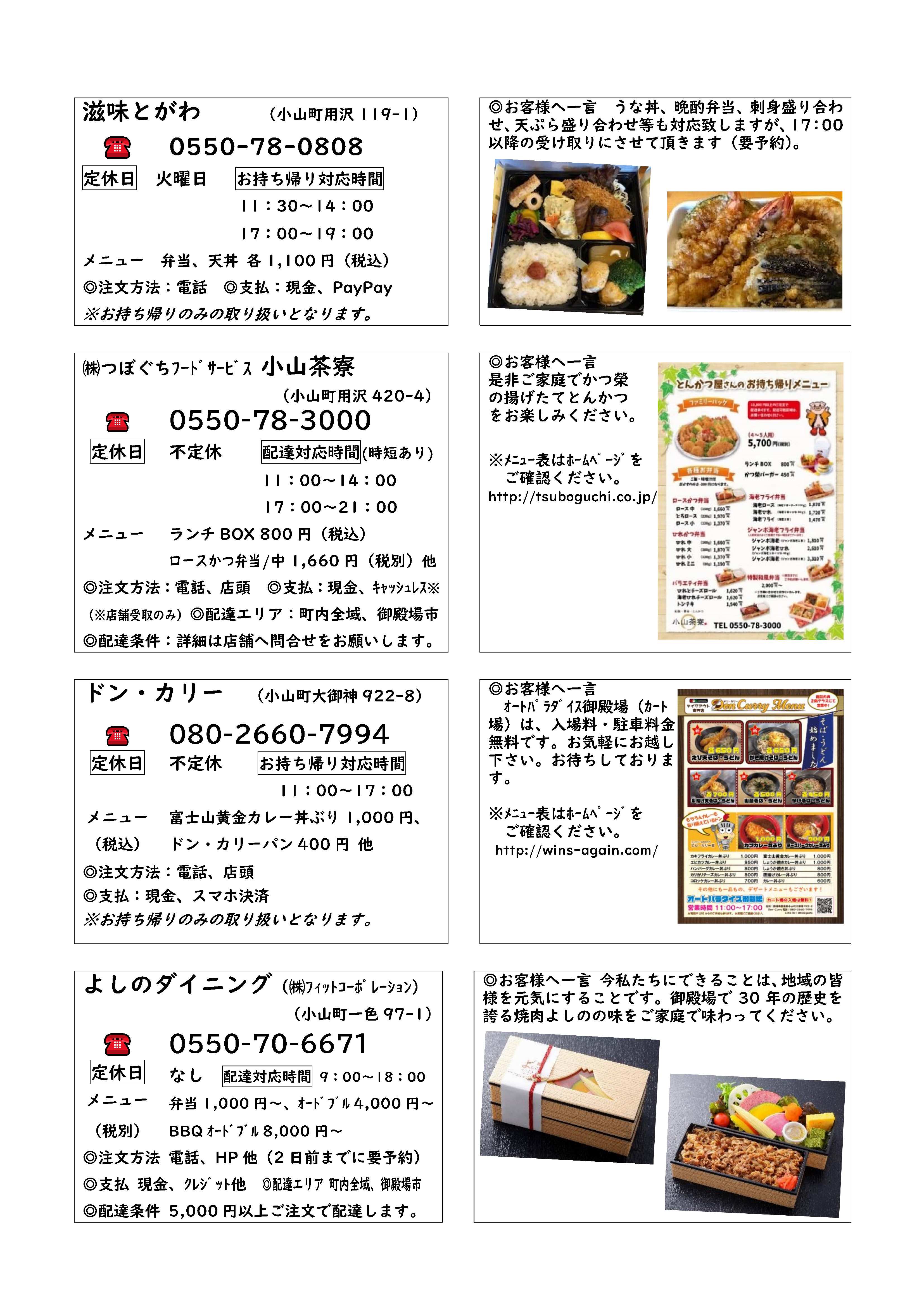 配達&お持ち帰りサービスinおやま 通年版発行について