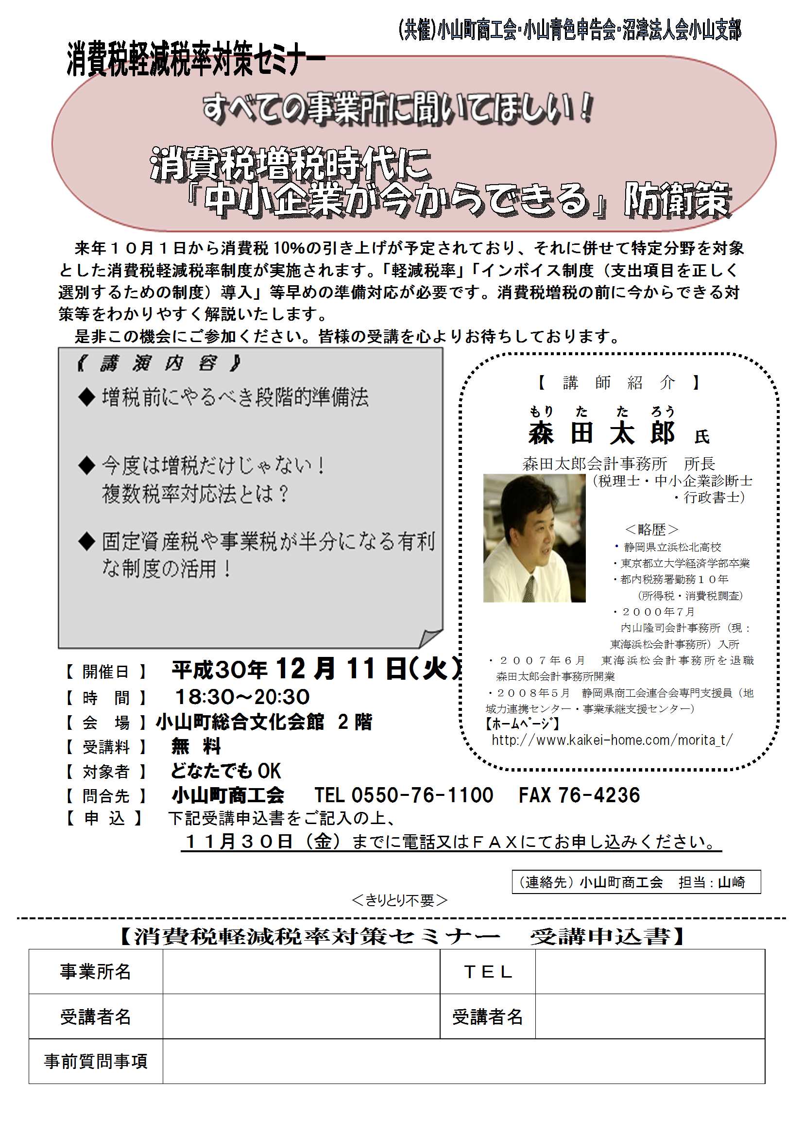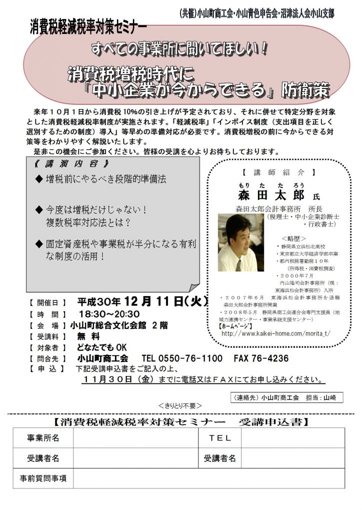 小山町商工会では、12月11日(火)小山町総合文化会館で「消費税軽減税率対策セミナー」を開催します。