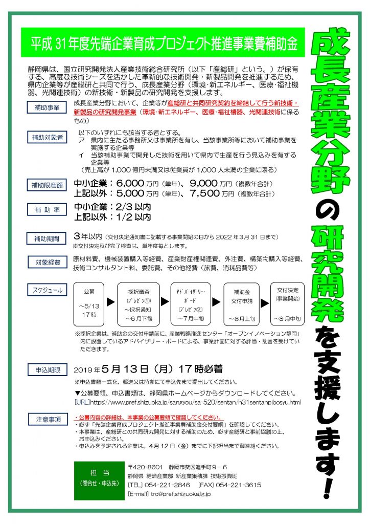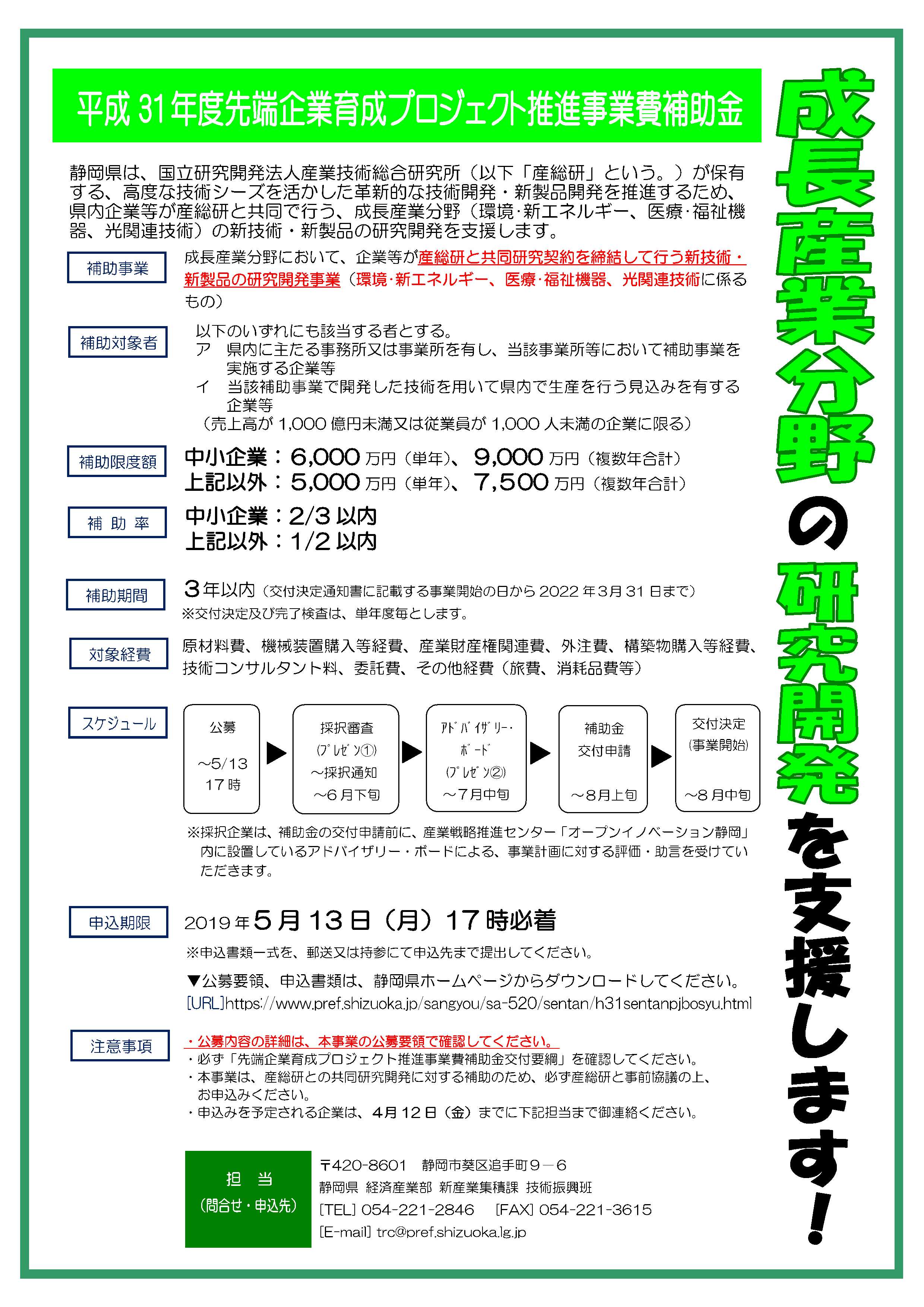 平成 31 年度先端企業育成プロジェクト推進事業費補助金のご案内