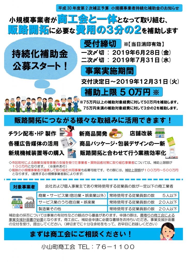 平成30年度第2次補正予算「小規模事業者持続化補助金事業」(商工会地区分)の公募が開始されましたので、ご案内いたします。
