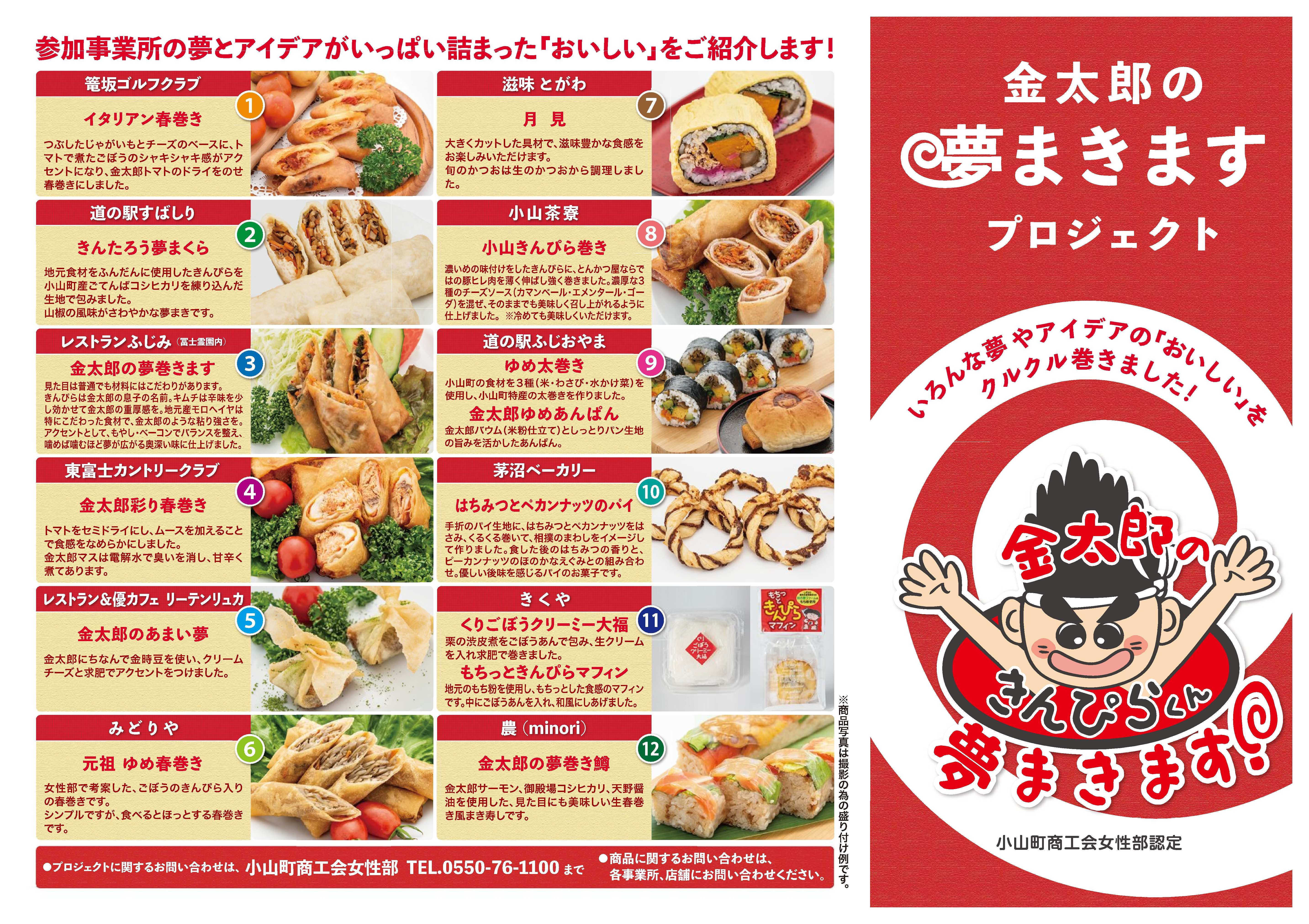 平成25年度から商工会女性部が取組んできた「金太郎ゆめ春巻き」プロジェクトを令和元年度から名称を「金太郎の夢まきます」に改め、商工会員の12店舗のご協力のもと、各店舗オリジナル商品を考案してもらい、新たなご当地グルメとして商工会女性部が認定しPRすることに決定しました。
