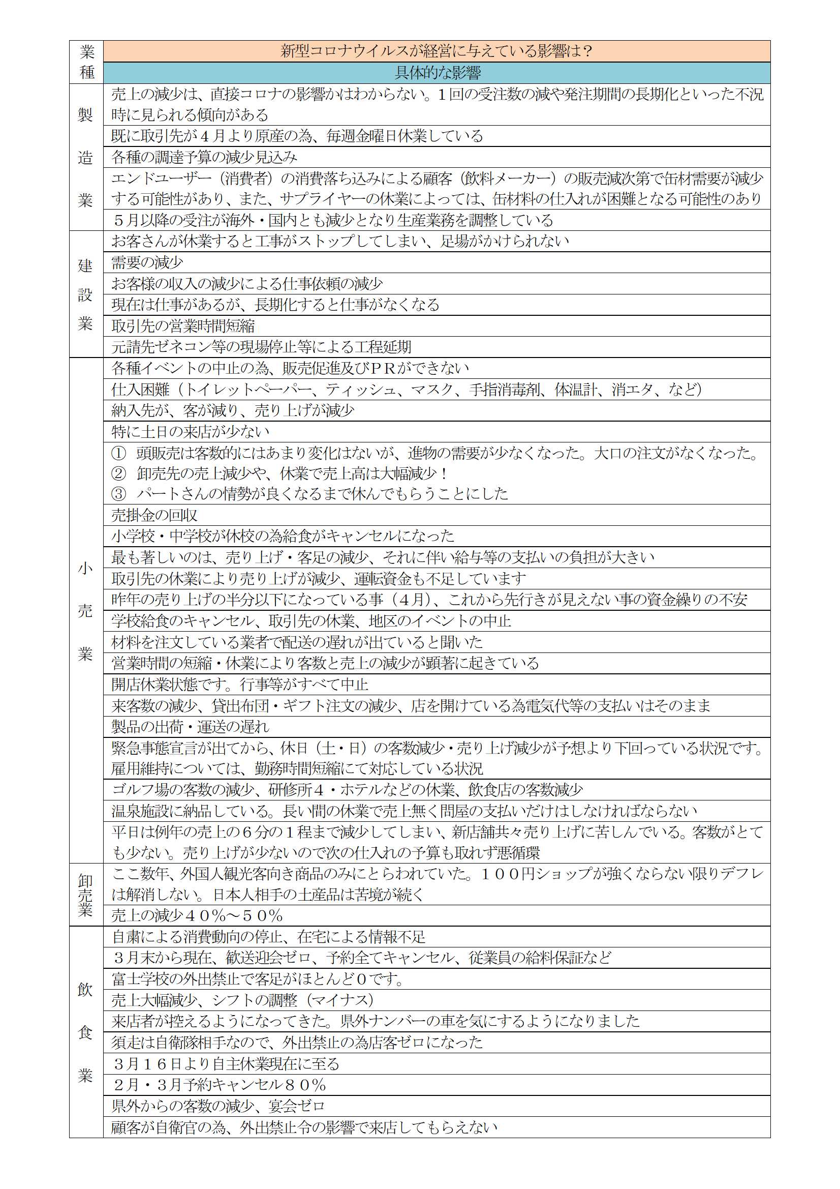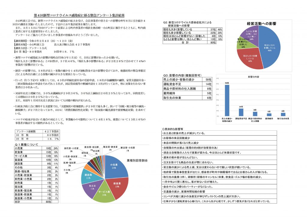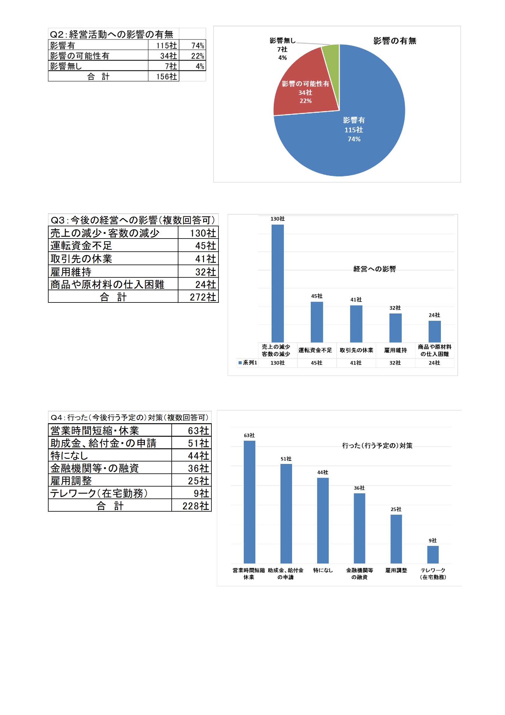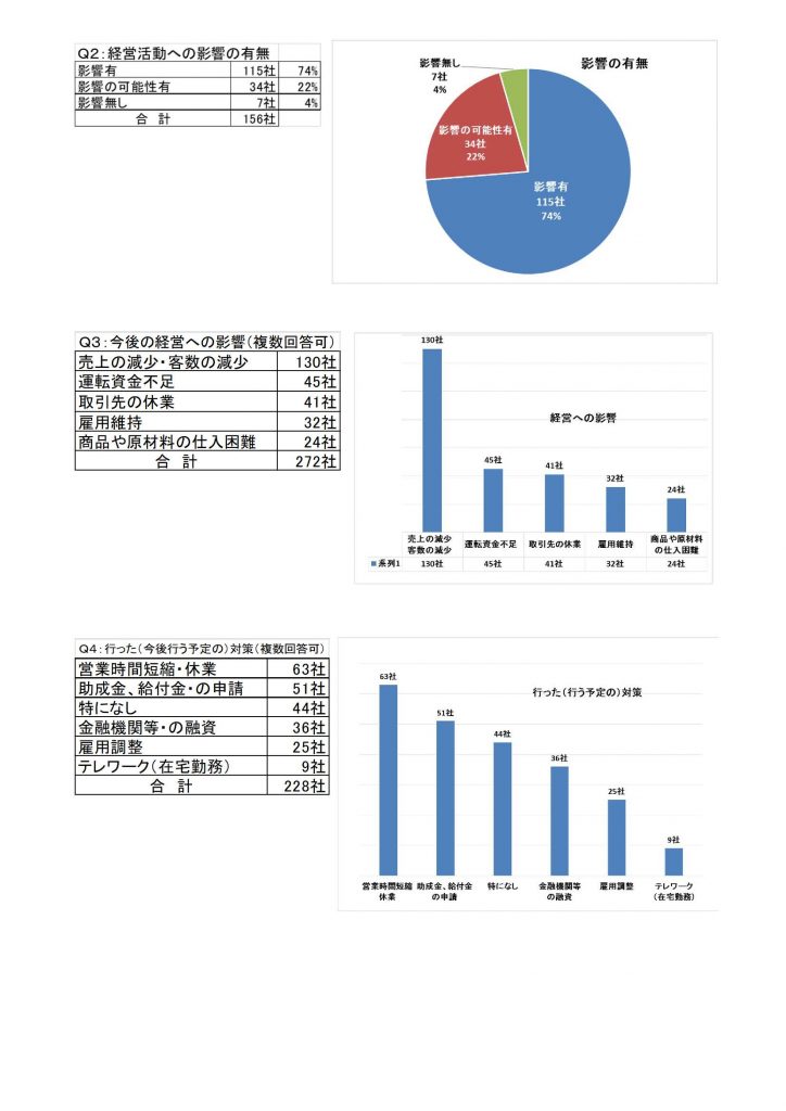 2020年4月16日 お知らせからのお知らせ 新型コロナウイルス感染症に係る緊急アンケート集計結果 ◇ご協力ありがとうございました。 【第4回令和3年2月実施アンケート集計結果】 【第2回令和2年4月実施アンケート集計結果】 【第1回令和2年3月実施アンケート集計結果】