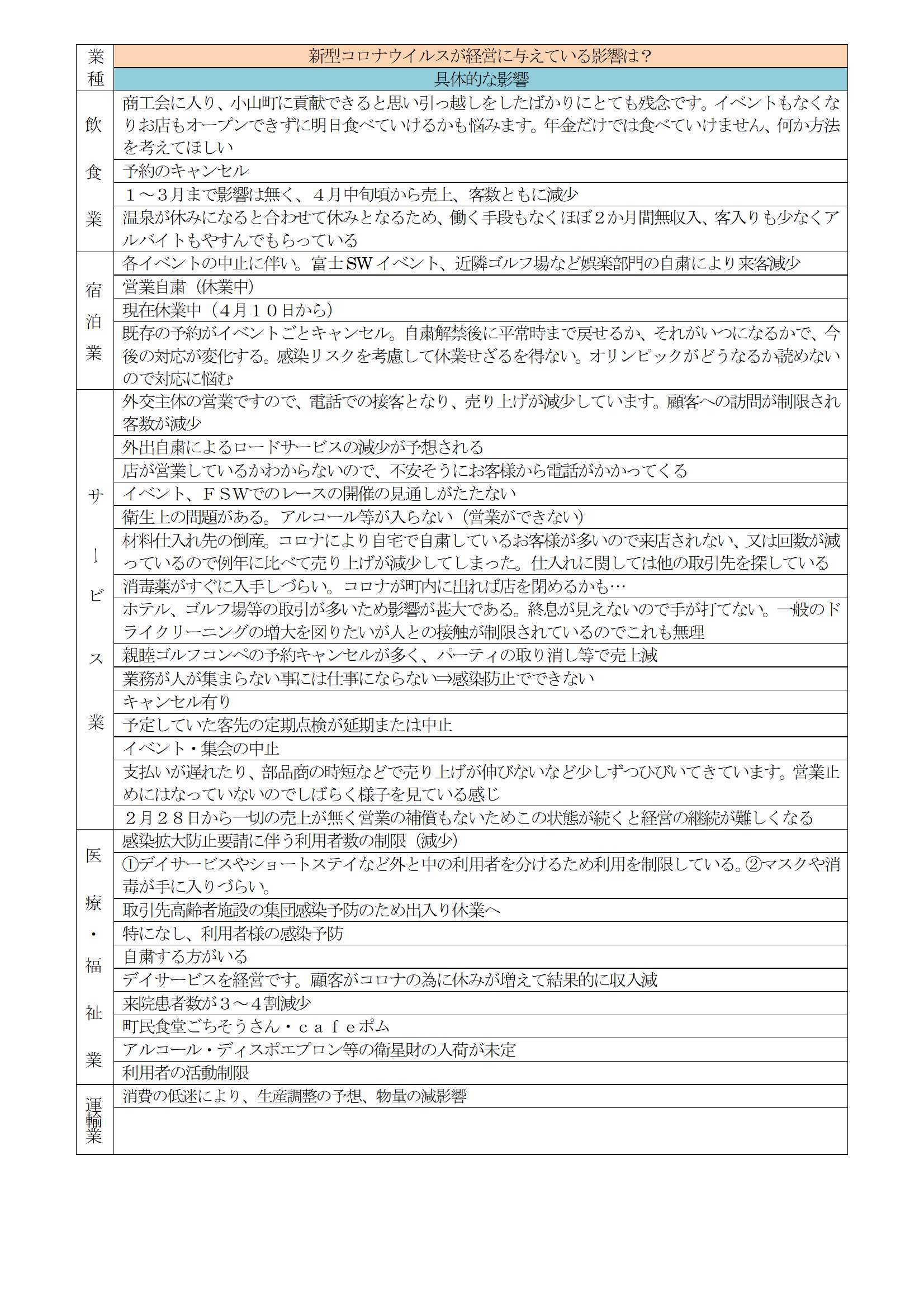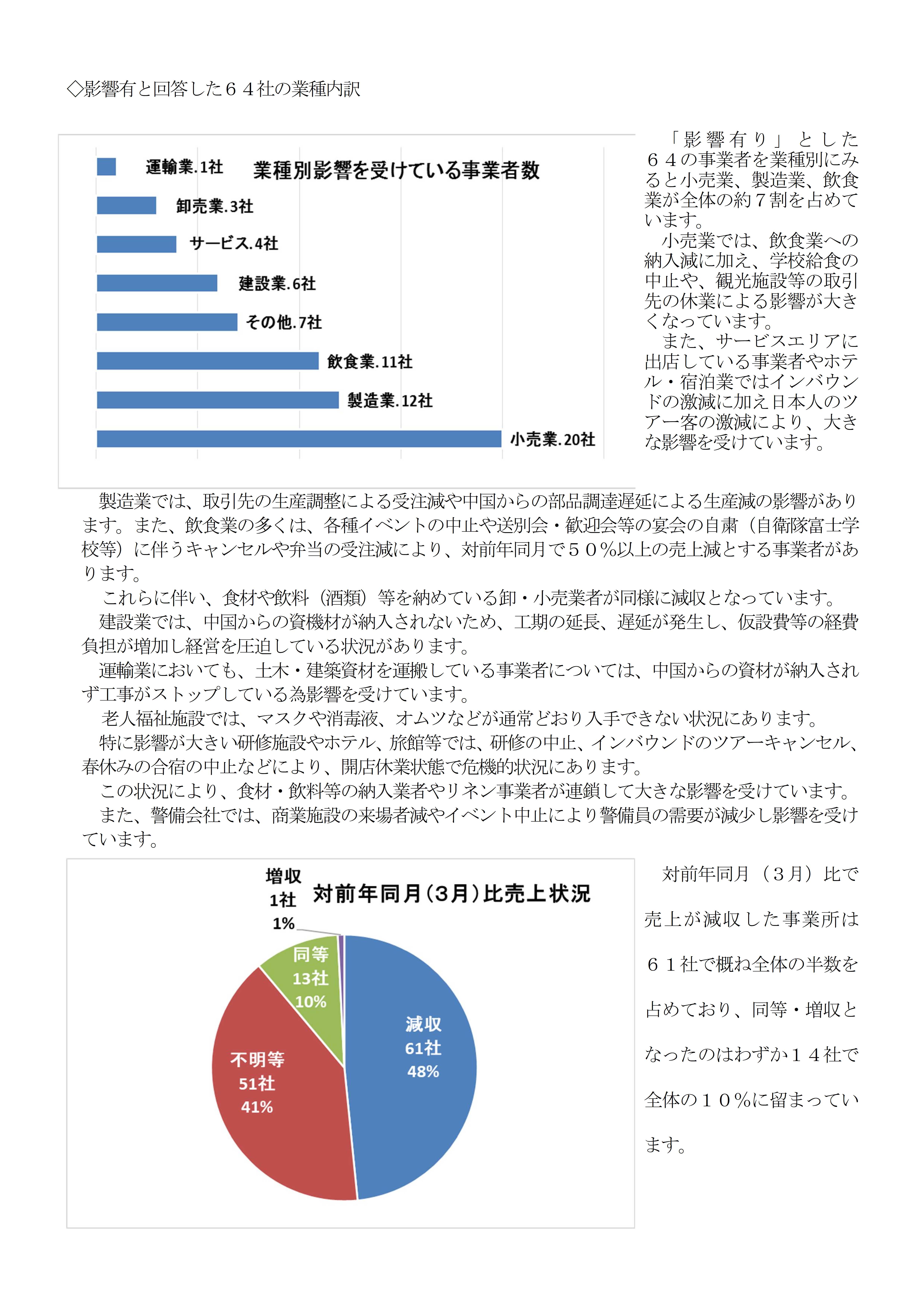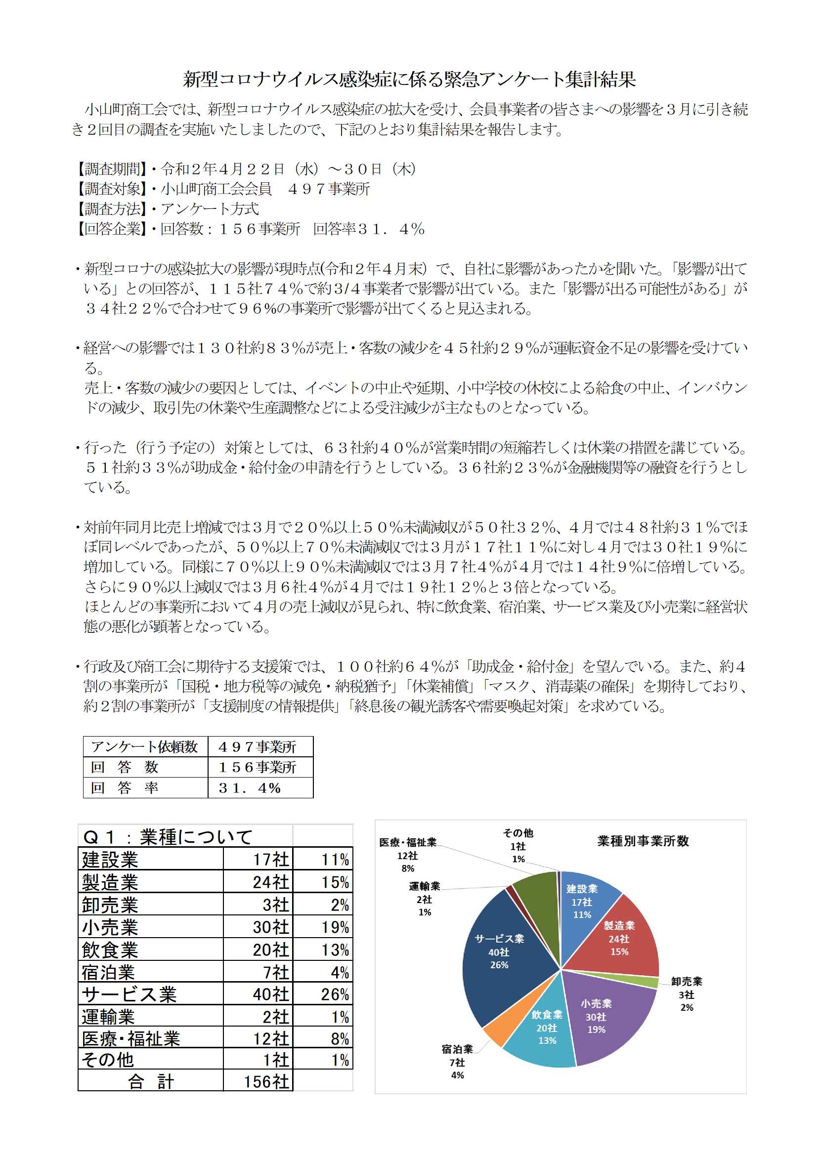 2020年4月16日 お知らせからのお知らせ 新型コロナウイルス感染症に係る緊急アンケート集計結果 ◇ご協力ありがとうございました。 【第4回令和3年2月実施アンケート集計結果】 【第2回令和2年4月実施アンケート集計結果】 【第1回令和2年3月実施アンケート集計結果】