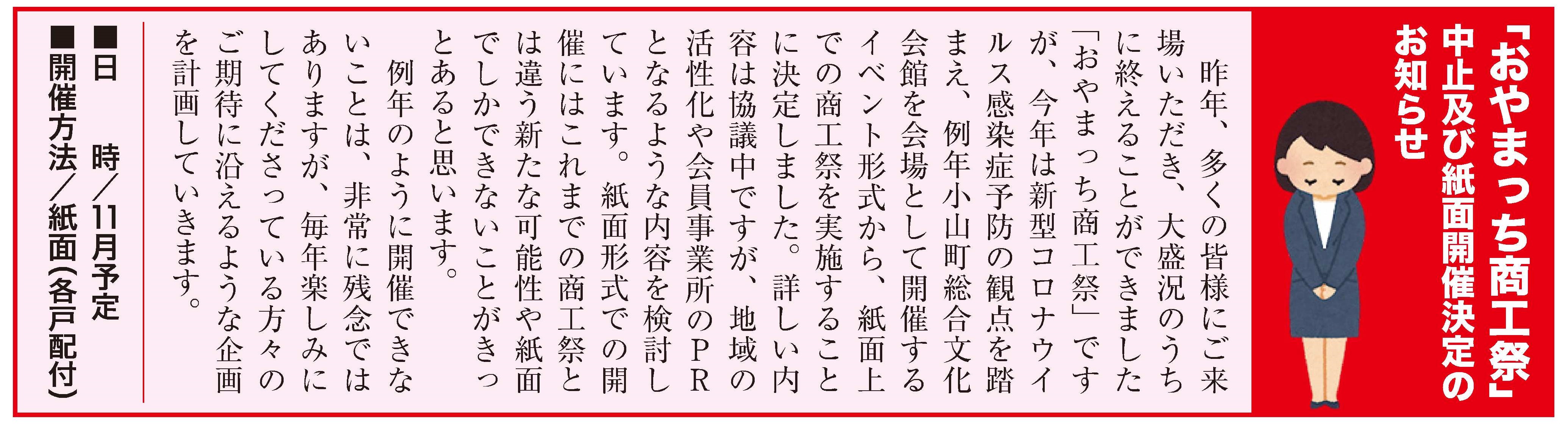 「おやまっち商工祭」中止及び紙面開催決定のお知らせ