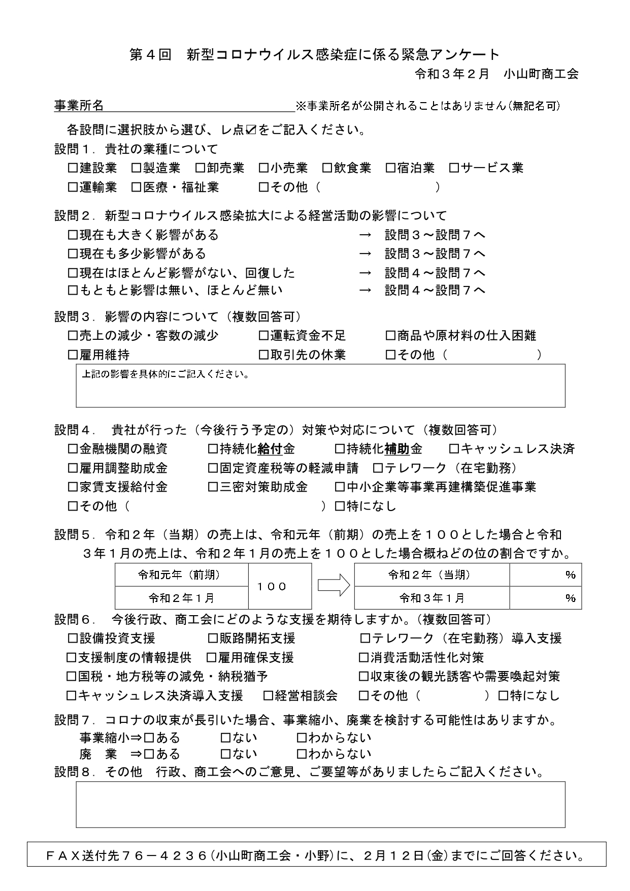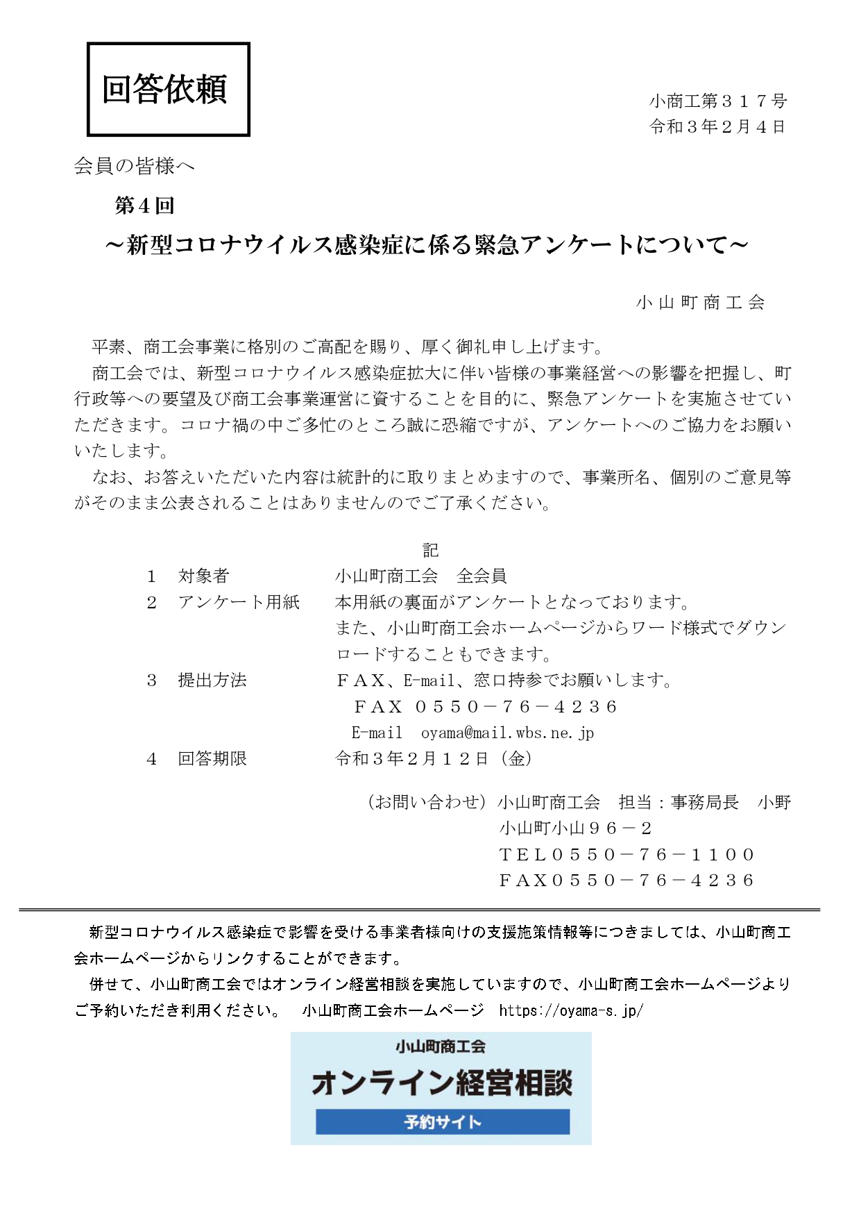 第4回 新型コロナウイルス感染症に係る緊急アンケートについて(お願い)