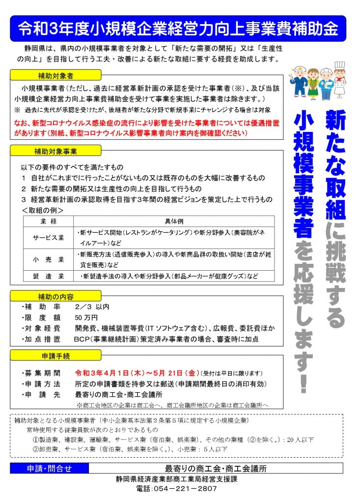 令和3年度 小規模企業経営力向上事業費補助金について(案内)