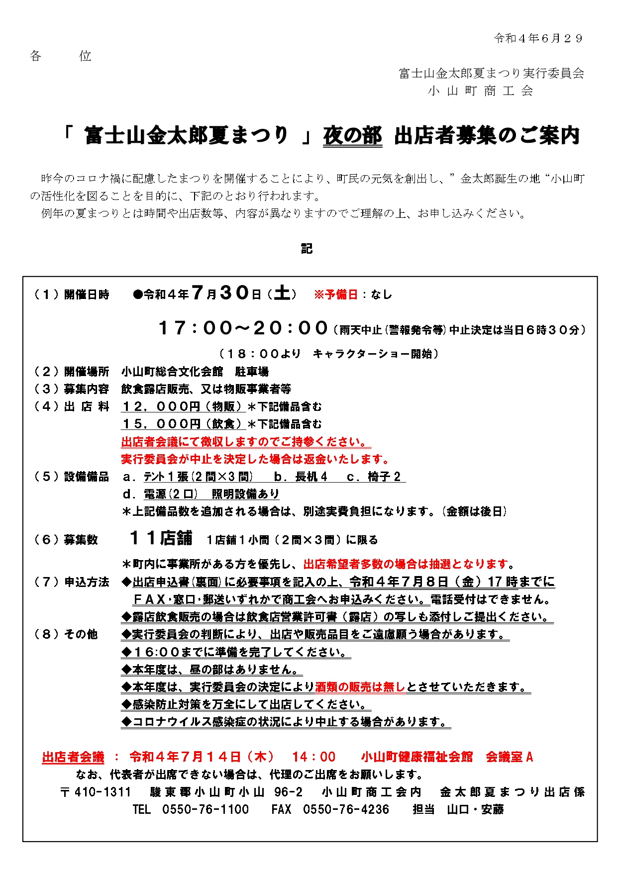 第58回富士山金太郎夏まつり出店募集について