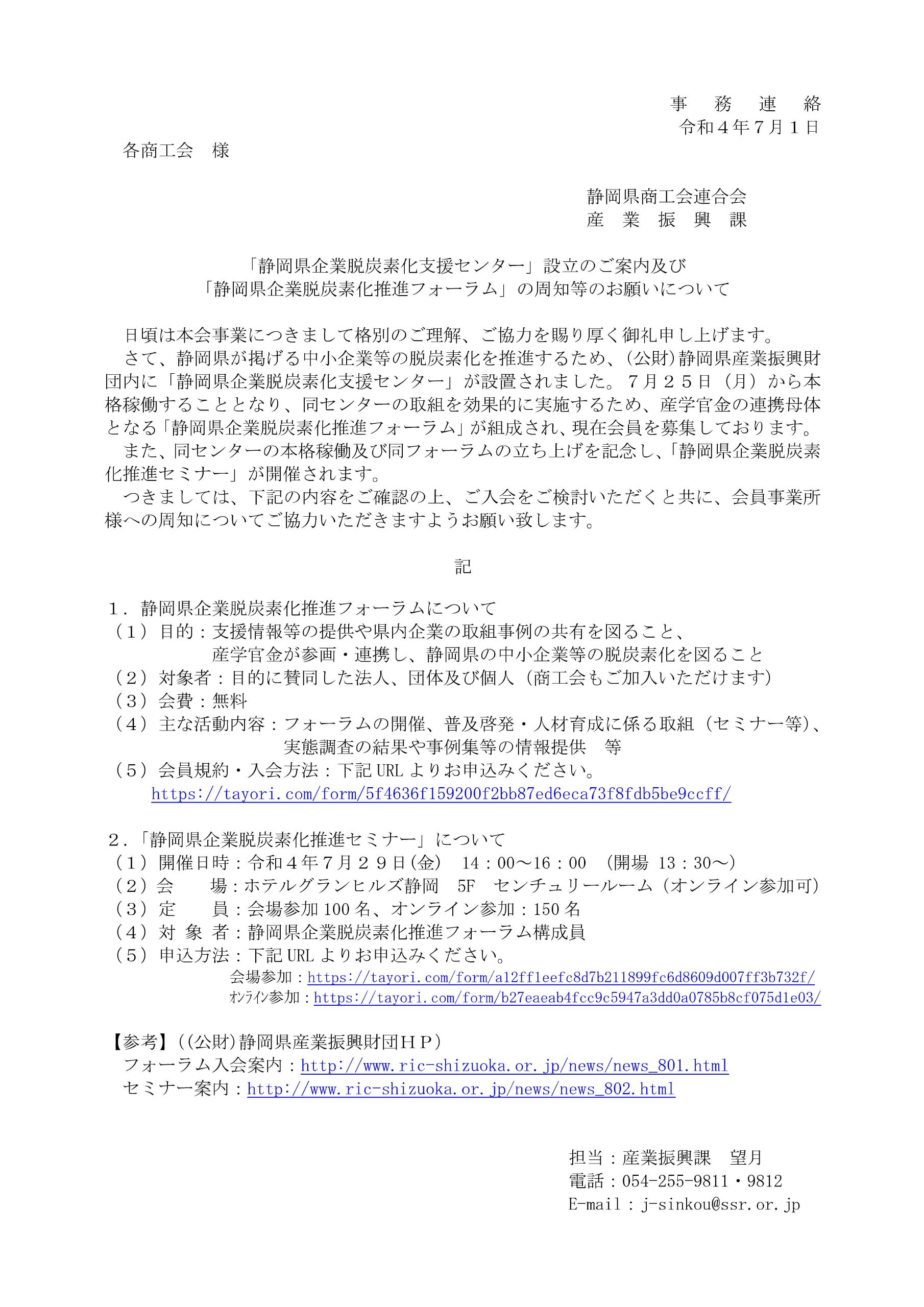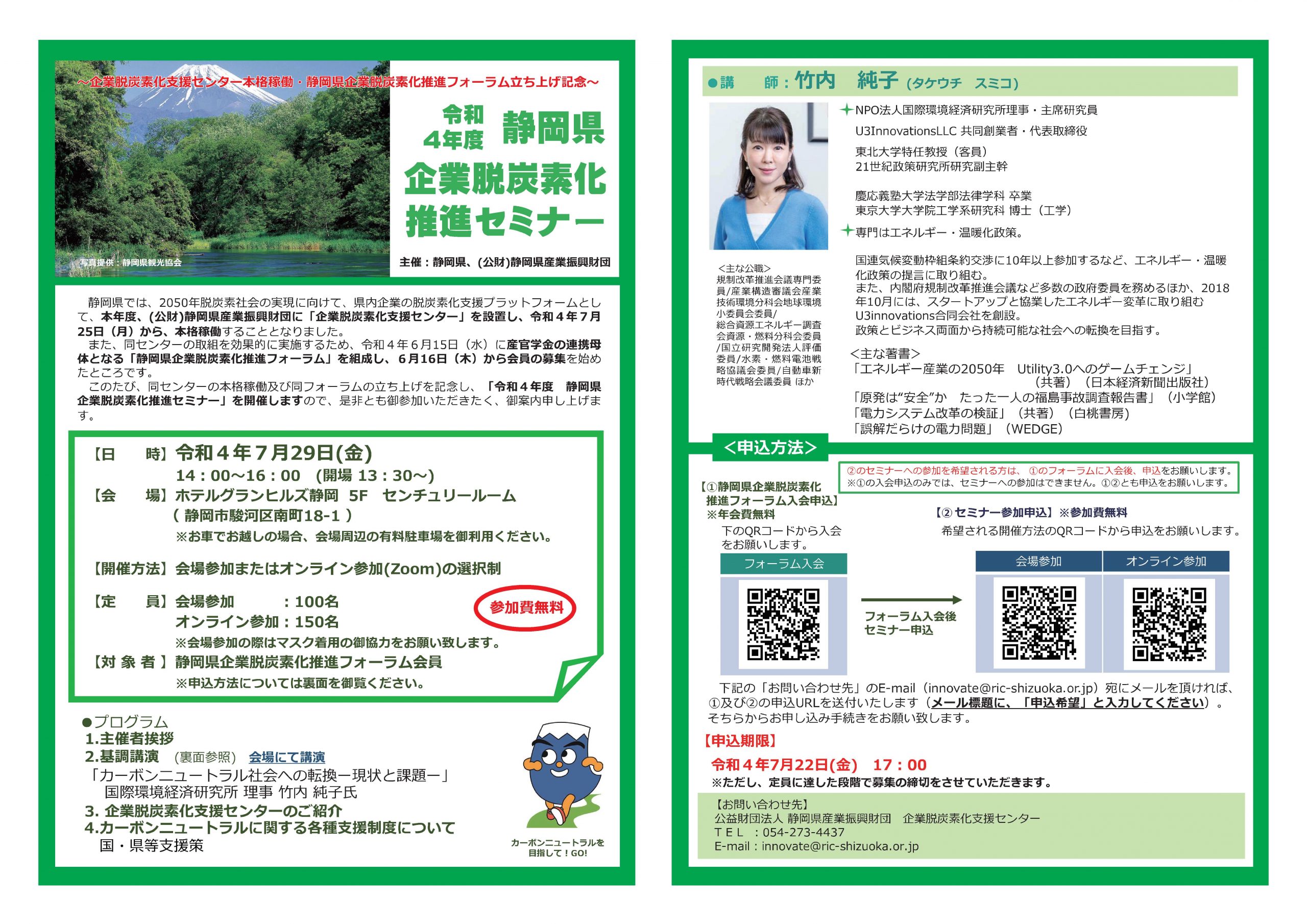 【ご案内】「静岡県企業脱炭素化支援センター」設立について