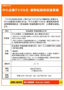 参考URL(静岡県商工振興課新着情報):静岡県/中小企業デジタル化・業態転換等促進事業費補助金 (pref.shizuoka.jp)