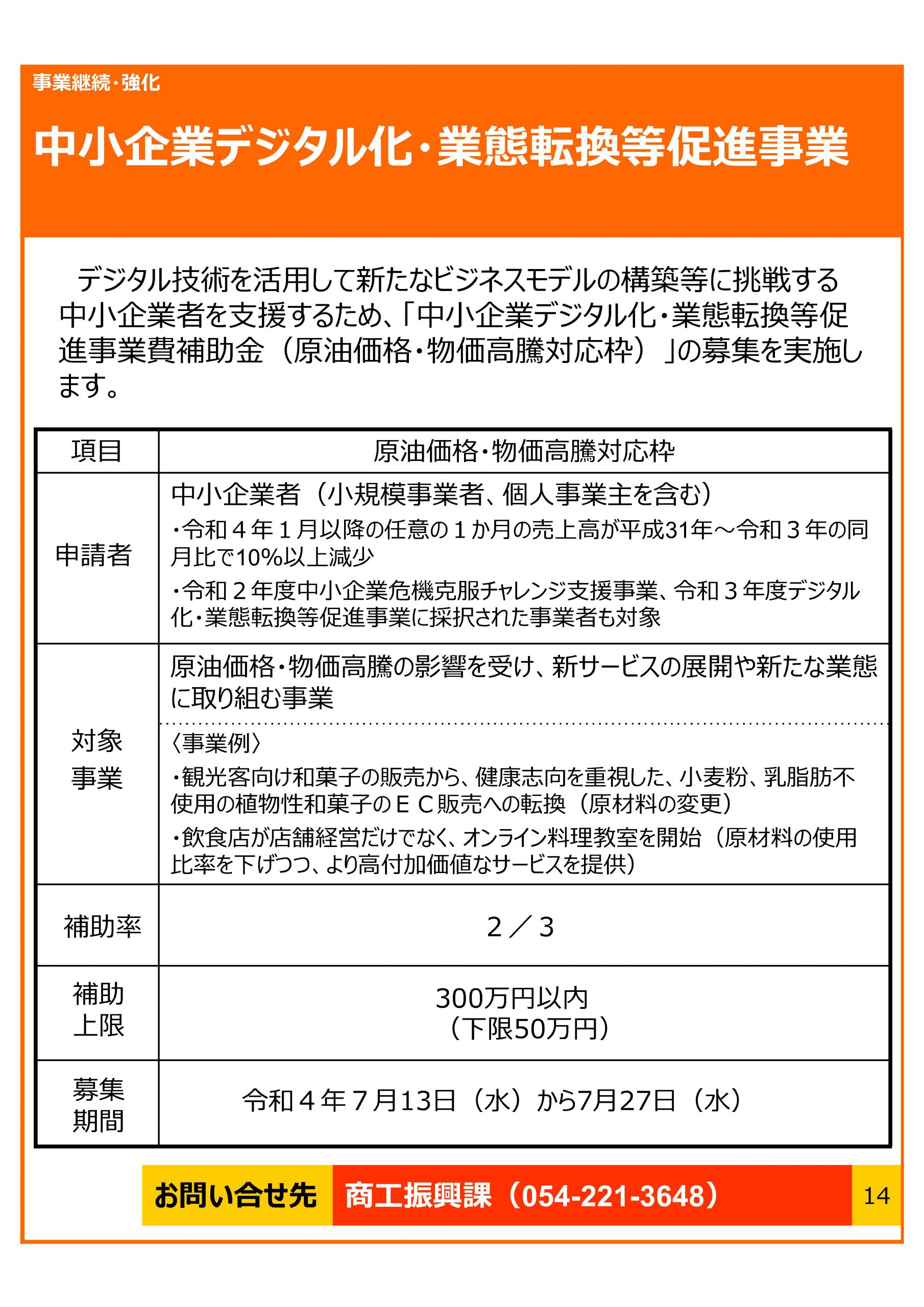 参考URL(静岡県商工振興課新着情報):静岡県/中小企業デジタル化・業態転換等促進事業費補助金 (pref.shizuoka.jp)