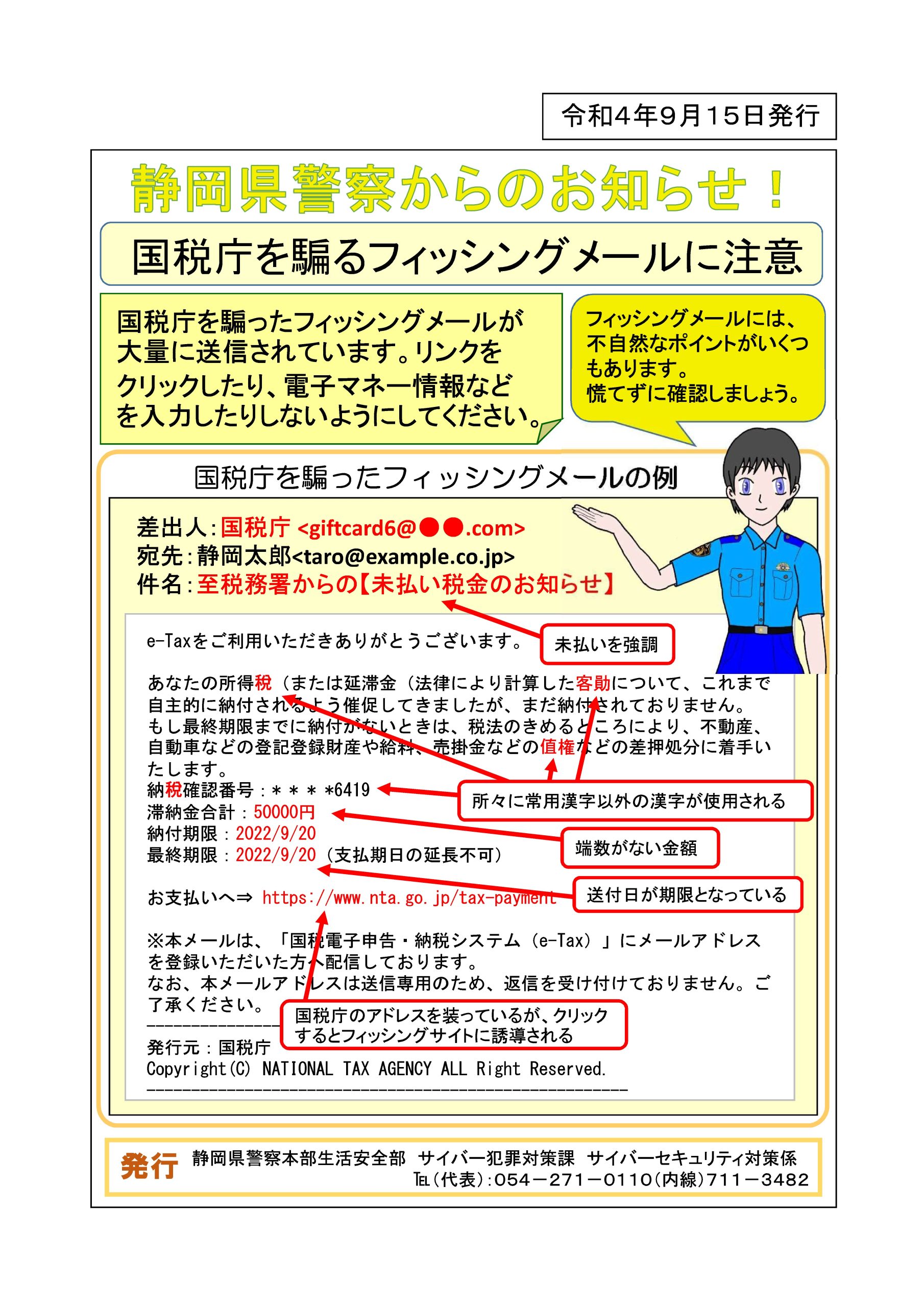 【お知らせ】情報セキュリティチラシ(国税庁を騙るフィッシングメールに注意)について