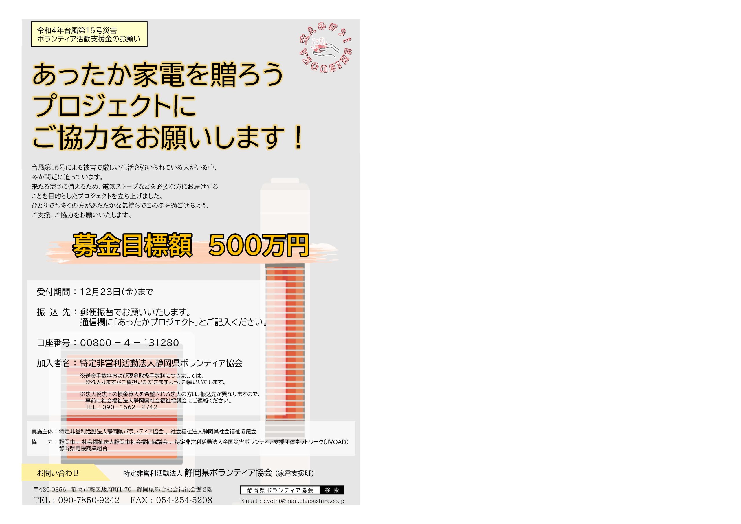 【お知らせ】台風第15号被害被災者支援のための「あったか家電支援プロジェクト」募金について