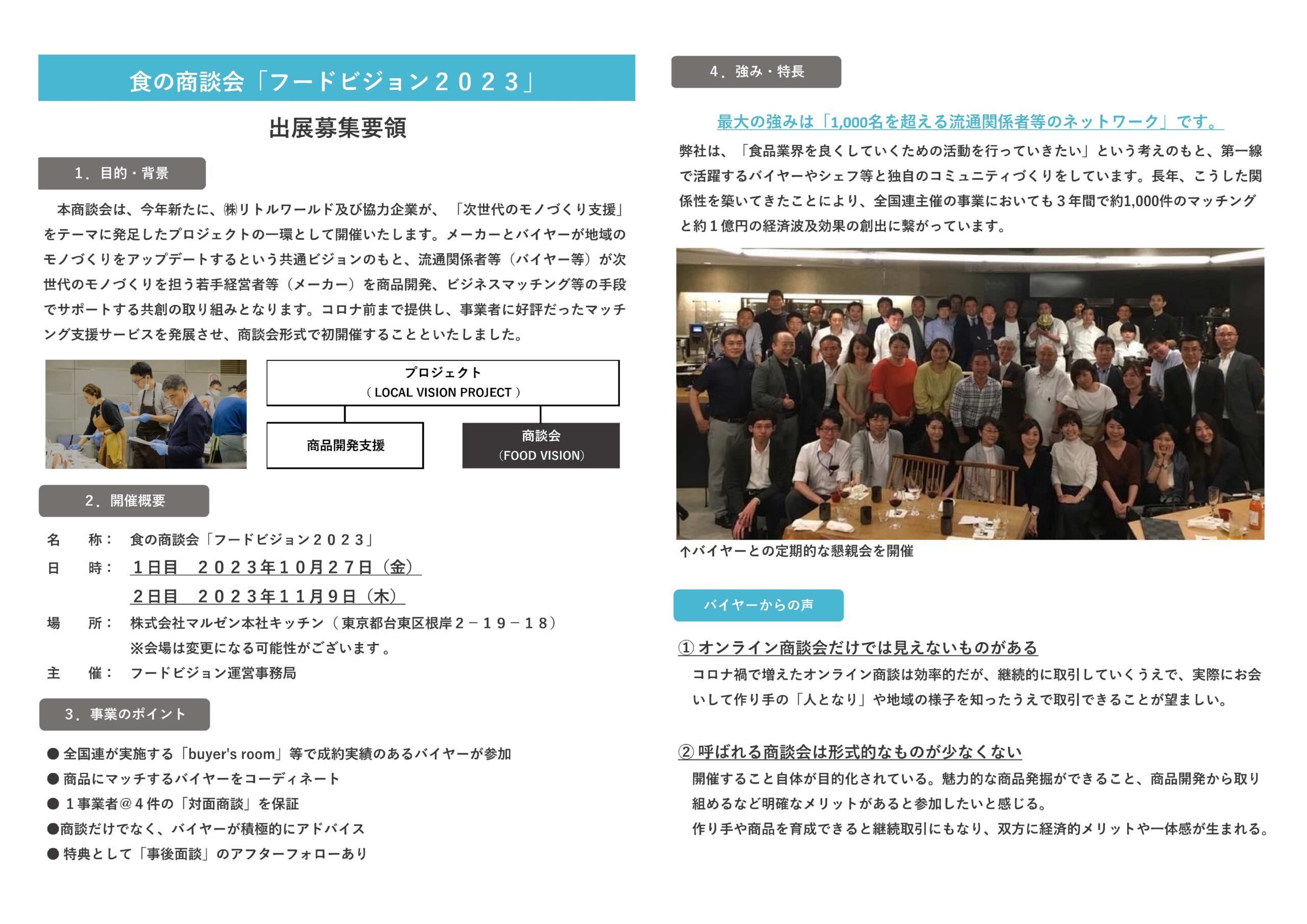 2023年3月22日 お知らせからのお知らせ 【ご案内】CANVAS販路開拓支援パートナー企業の認定及び食の商談会「フードビジョン2023」について 標記の件につきまして、全国連より別添の通り案内がございましたのでお知らせいたします。 参考URL:https://www.canvas-shokokai.jp/partner/3204/