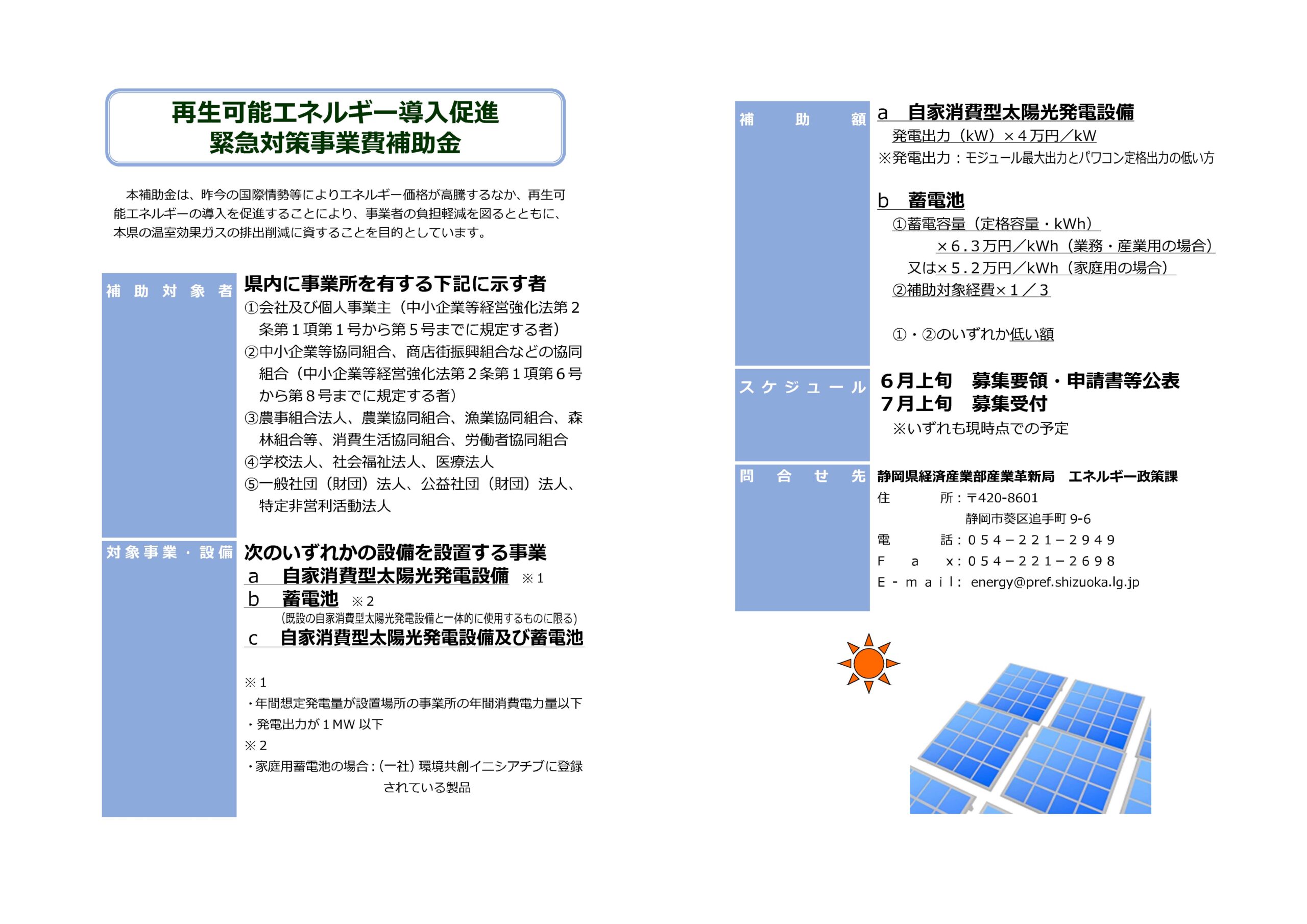 【お知らせ】再生可能エネルギー導入促進緊急対策事業費補助金の公募について