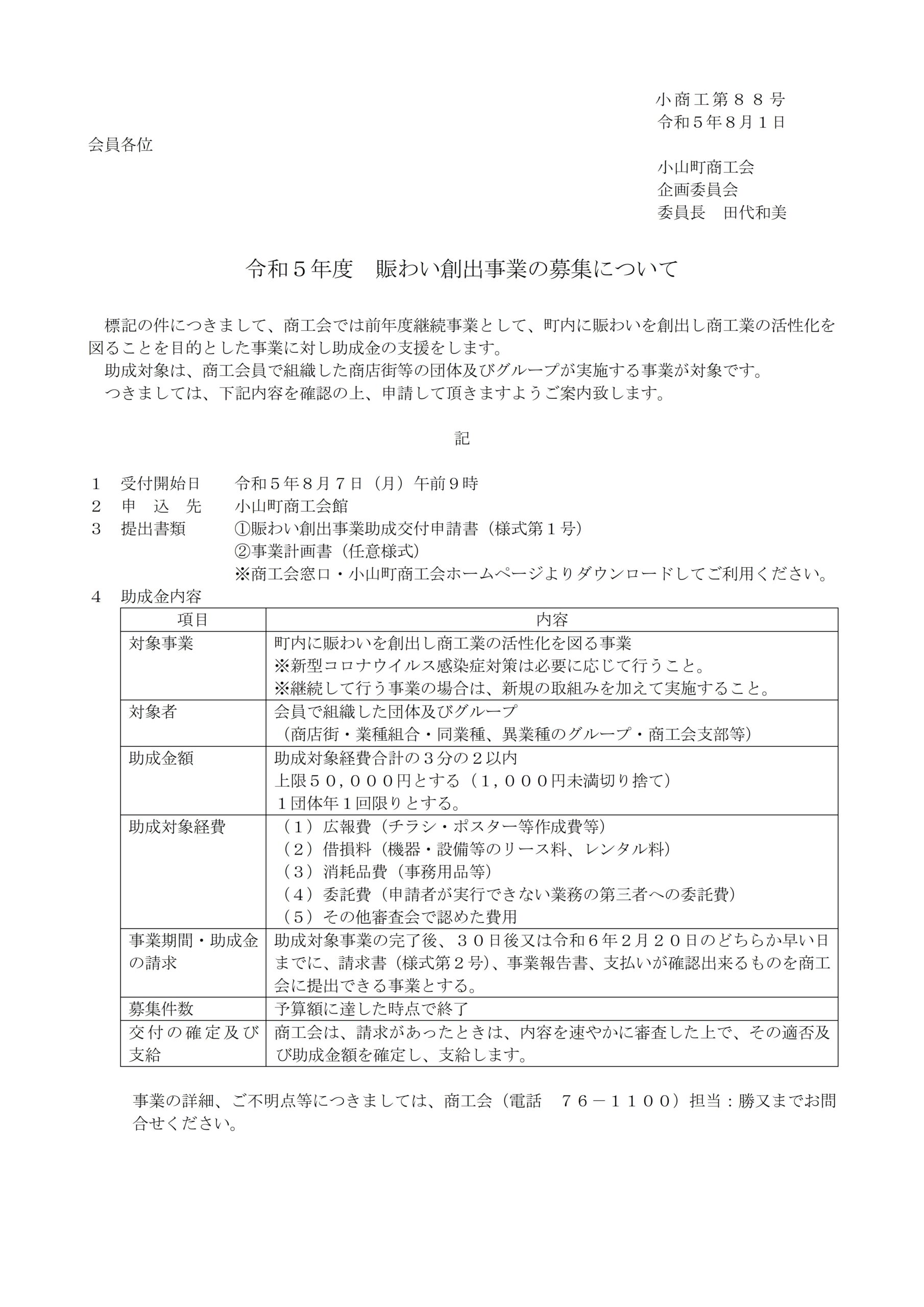 ※賑わい創出事業助成交付申請様式はこちら⇒