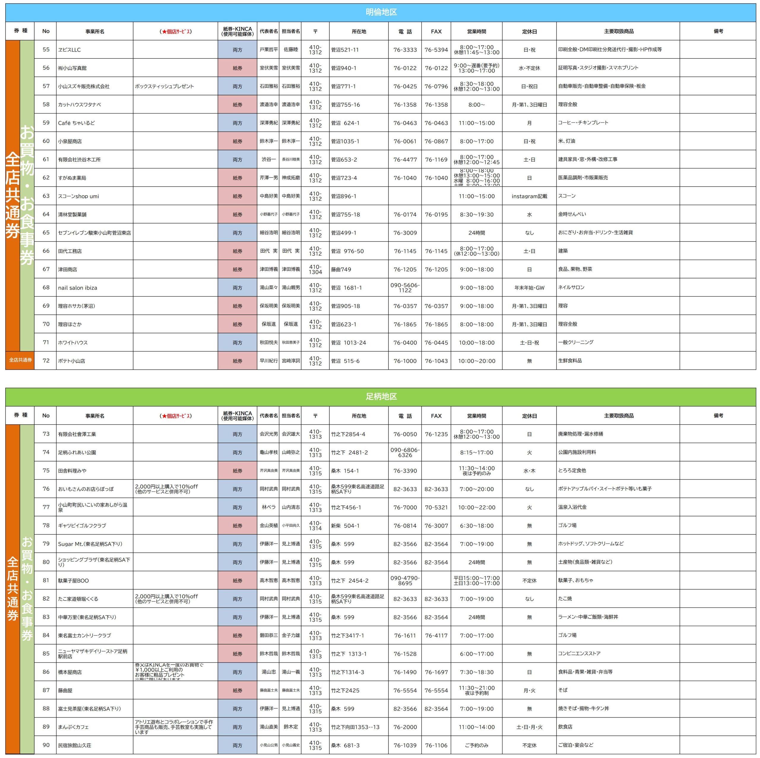 2025年8月1日 お知らせからのお知らせ 【ご案内】2025おやま応援プレミアム商品券事業所一覧 2025おやま応援プレミアム商品券事業所一覧 ※プレミアム商品券は好評につき完売しました。 ※利用可能期間:紙券は12月末まで、KINCAは購入後5か月間です。 更新日:2025年9月12日(金) 使用可能な媒体の見方:紙券のみ(赤)、KINCAのみ(黄)、両方(青) お問い合わせ先 小山町役場 商工観光課 0550-76-6111 まちづくり公社おやま 0550-75-7001 小山町商工会 0550-76-1100