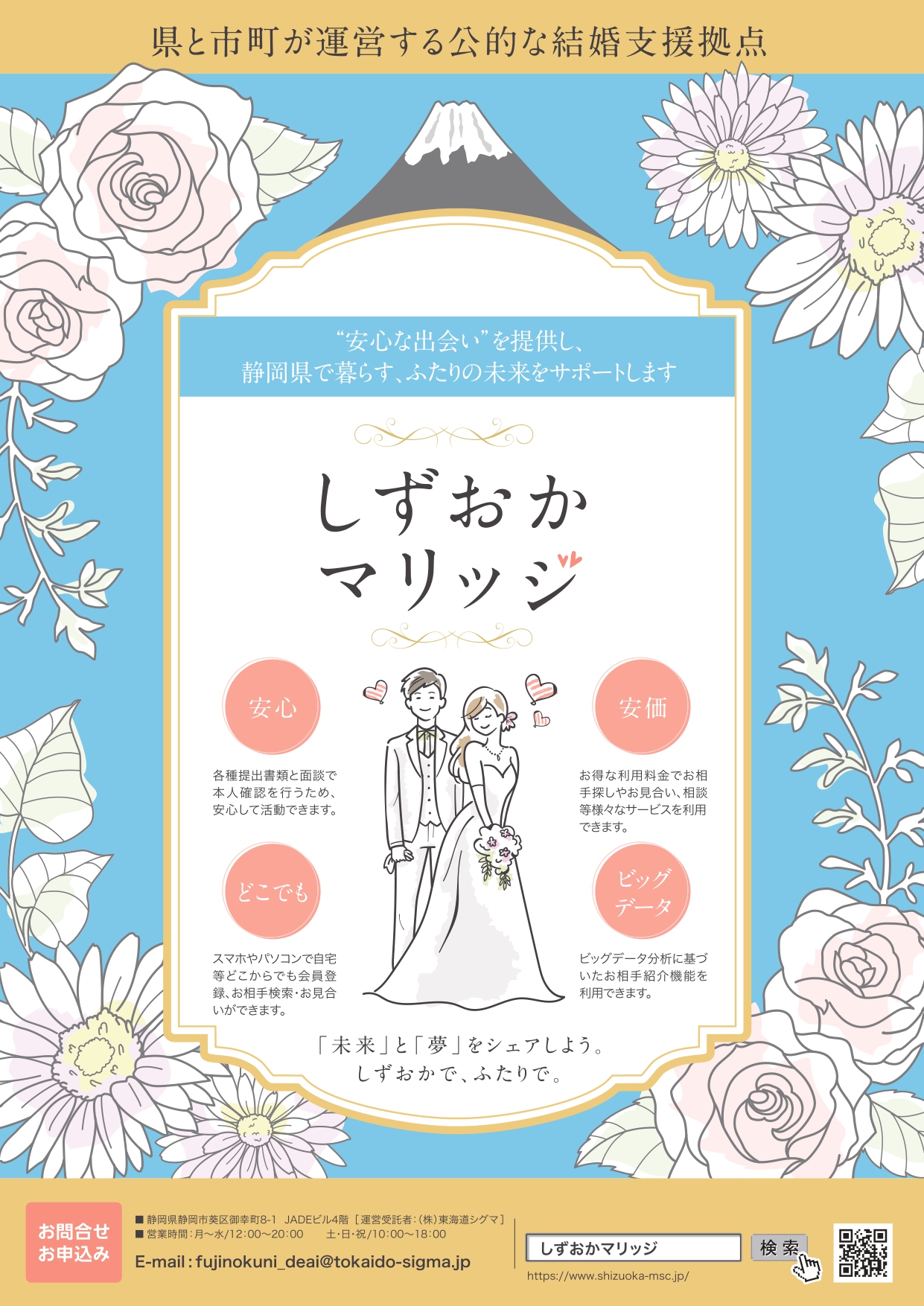 【ご案内】しずおかマリッジについて~県と市町が運営する公的な結婚支援拠点~