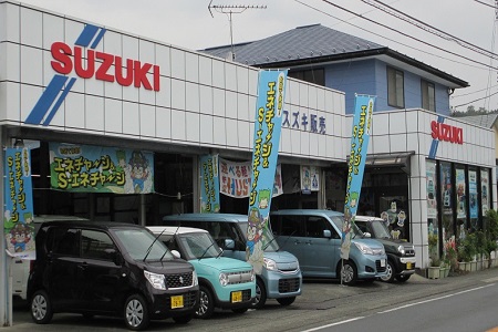 自動車メーカー スズキの副代理店です。 自動車の販売、点検、車検、修理、板金から自動車保険まで何でも御用命ください。 オートバイも取扱いいたします。福祉車両セニアカーの取扱もします。もちろんスズキ車以外でも取扱いたしますので、お気軽にお申し付けください。
