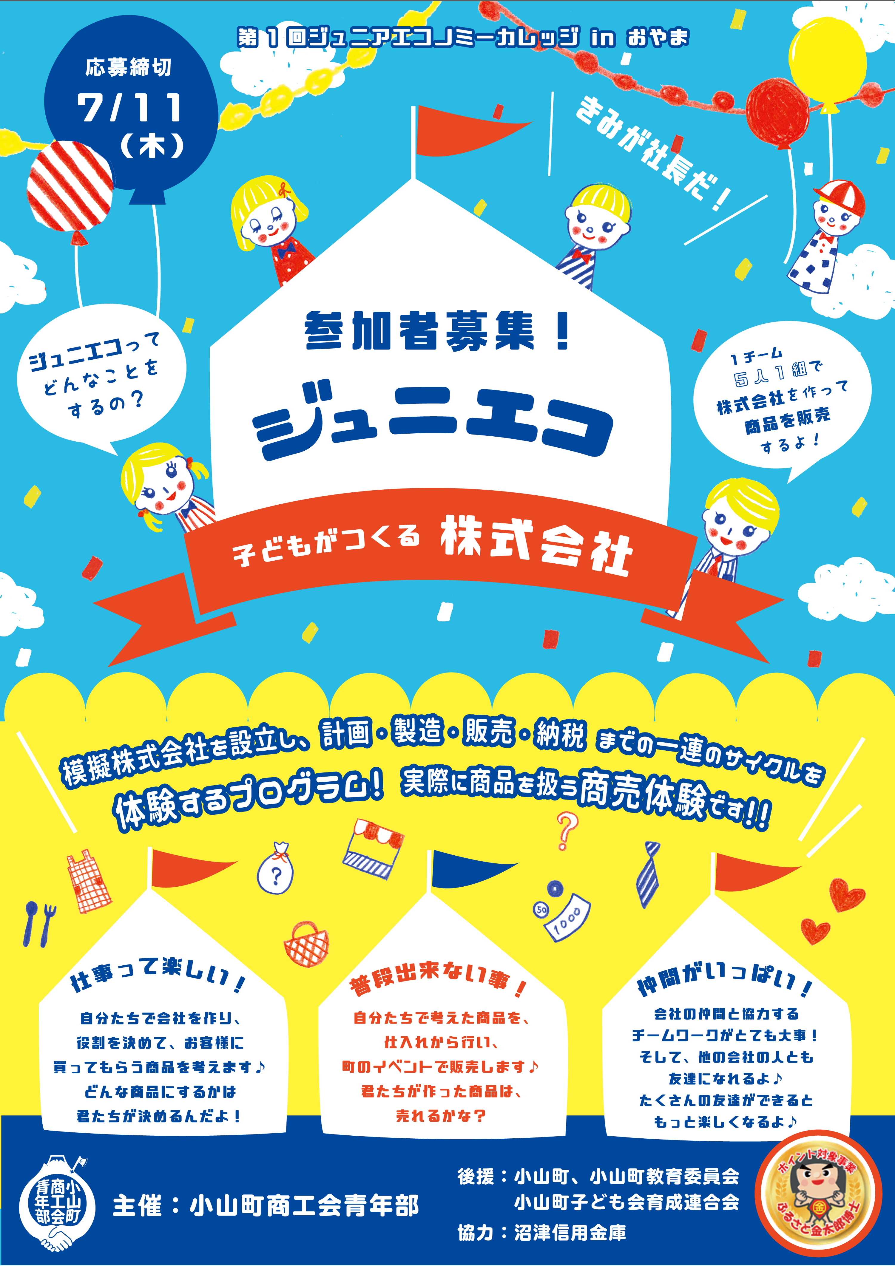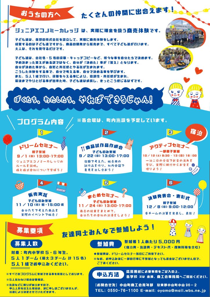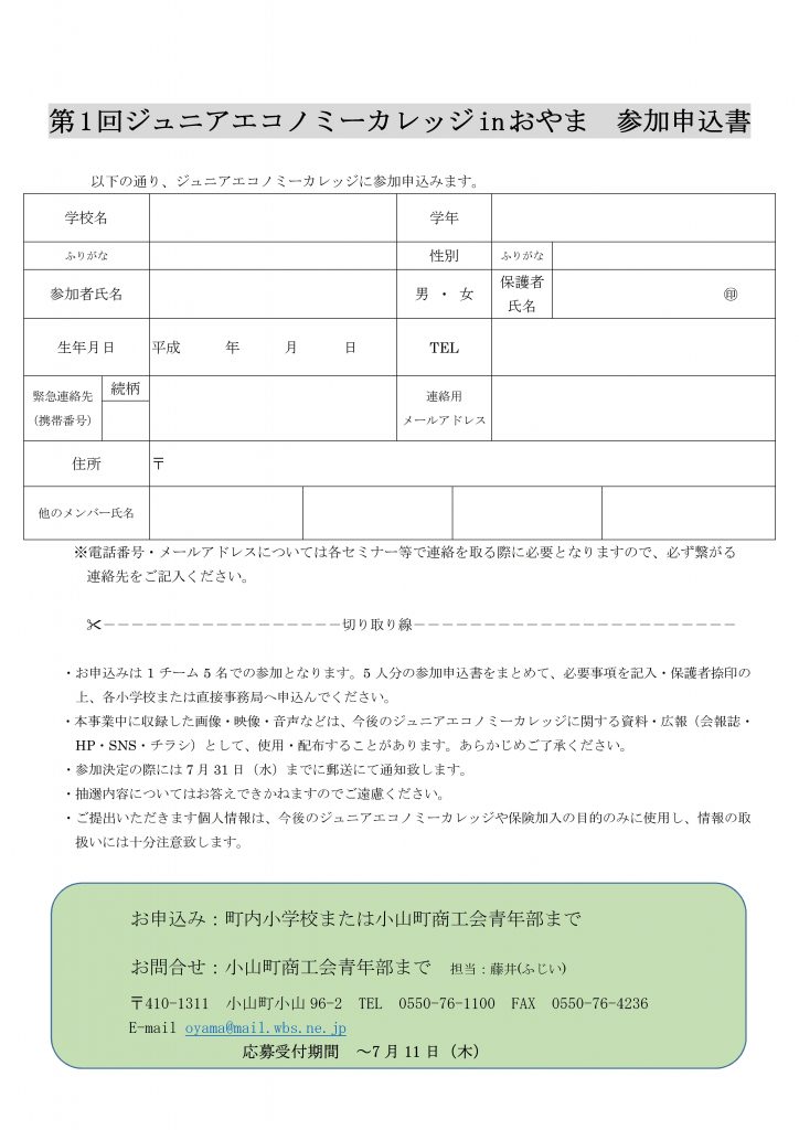 - 申し込み:7月11日(木)までに、学校で配布される参加申込書に必要事項をご記入の上、各学校又は直接、商工会までご提出ください。